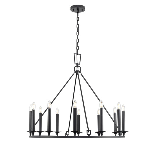 Tudor 12 Light Ring Chandelier In Matte Black Finish